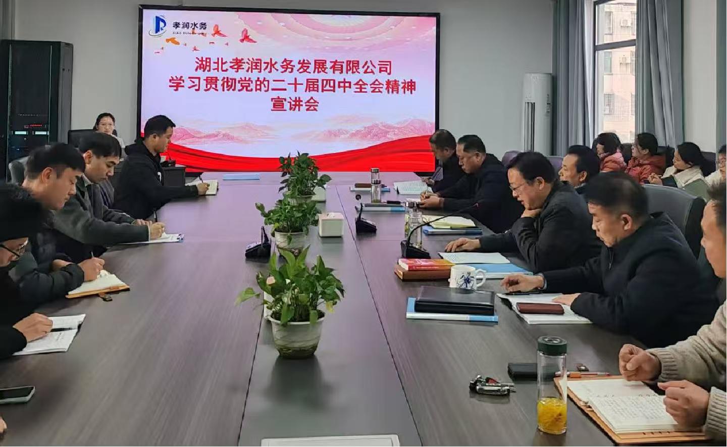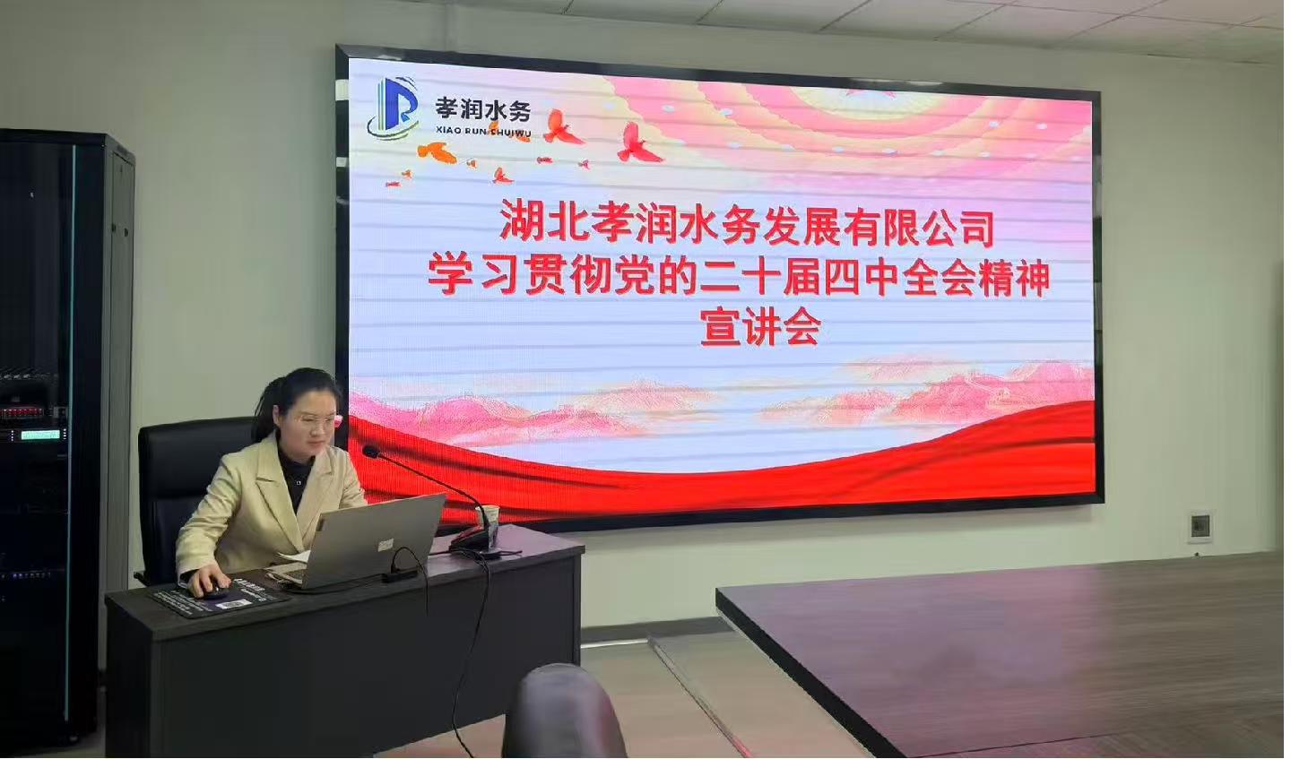12月11日下午,学习贯彻党的二十届四中全会精神县委宣讲报告团走进湖北孝润水务发展有限公司,邀请县委宣讲团成员、党校专技教师项晶晶作专题辅导,党组书记姜国高主持会议,公司全体干部职工参会。